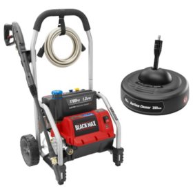 The black max 1700 psi pressure washer with surface cleaner will blast through even the toughest of jobs in no time.
